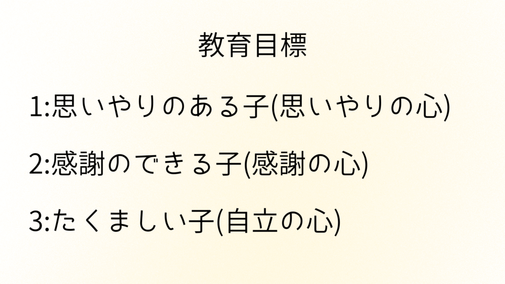 全職員が心を1つにして、道徳教育に基づく自主的な子どもの活動を援助しながら、健康で心豊かな子どもの育成に専念いたします。